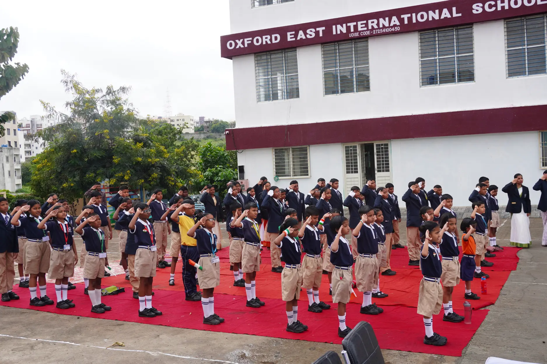 Oxford East International School proudly celebrated Independence Day with deep patriotism and grandeur. The event began with the flag hoisting ceremony, followed by the national anthem and inspiring speeches.
