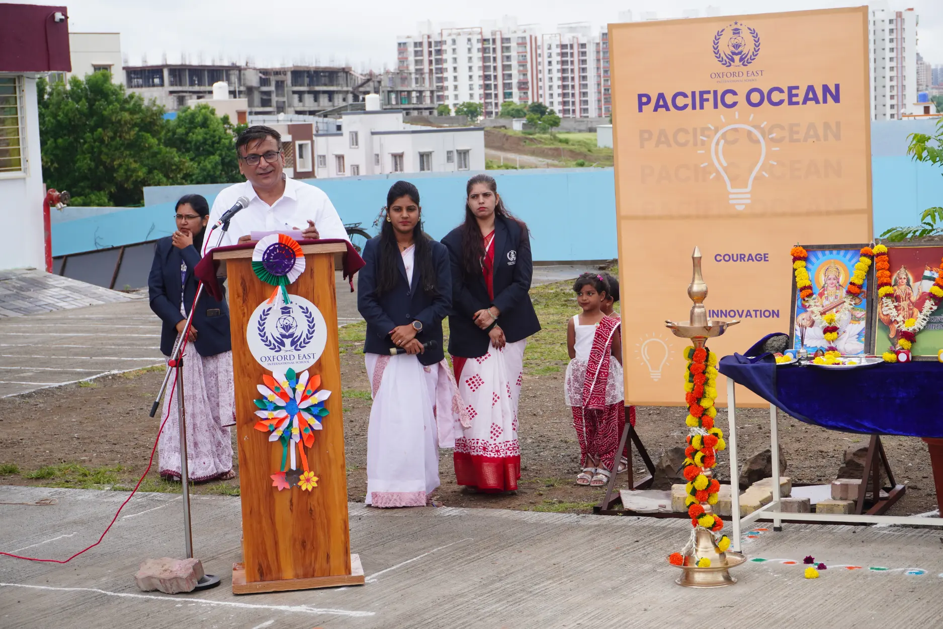Oxford East International School recently celebrated Independence Day with great pride and patriotism. The program began with our honorable guests and school leaders hoisting the National Flag, followed by the soulful rendition of the National Anthem, filling the atmosphere with respect and devotion for the nation.