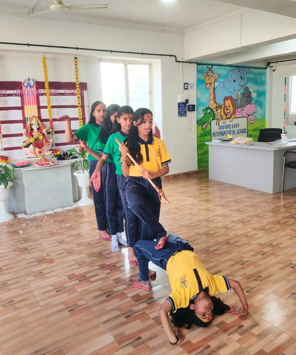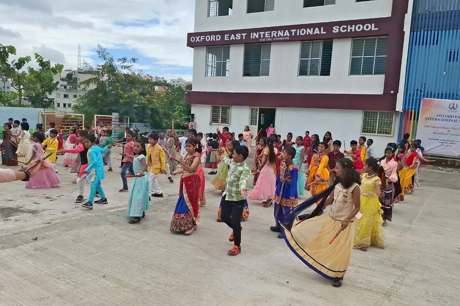 Oxford East International School celebrated Navratri with vibrant colors, music, and cultural enthusiasm. The campus came alive with students dressed in traditional attire, participating in Garba and Dandiya performances that filled the air with joy and festivity.