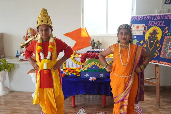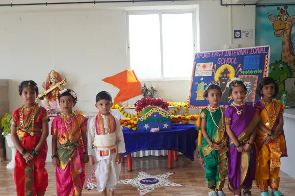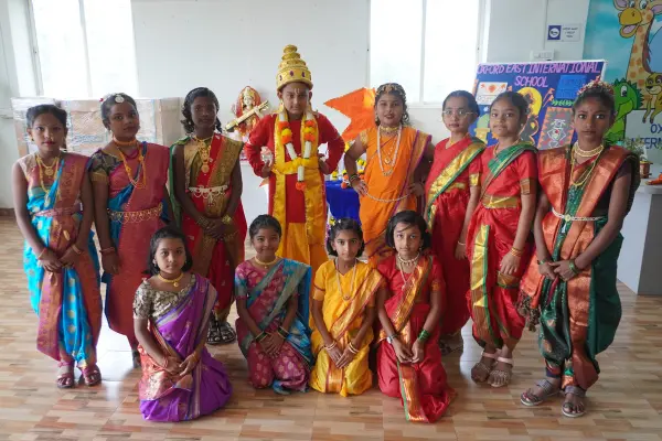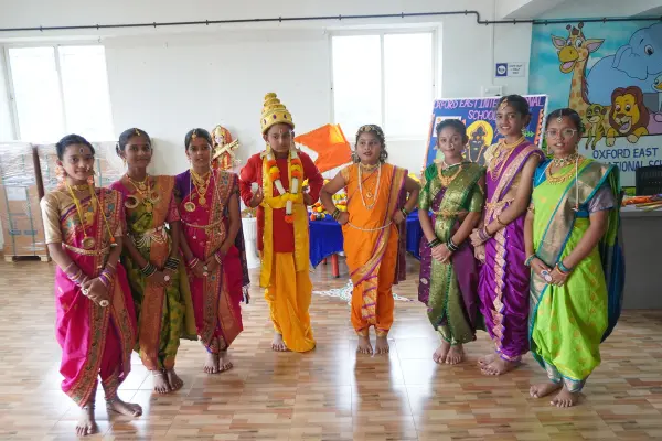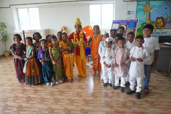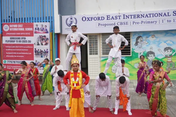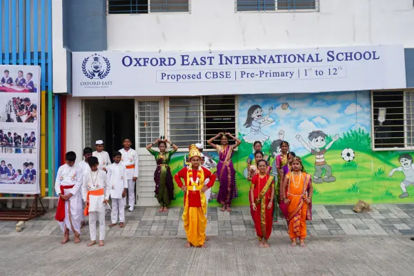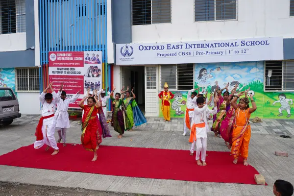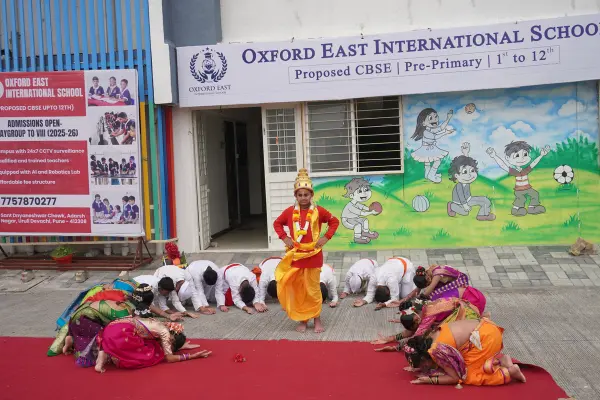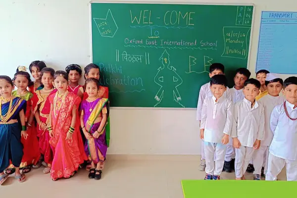 Oxford East International School celebrated the sacred tradition of Palkhi with great devotion and cultural pride. The school campus resonated with the rhythmic beats of dhol-tasha and chants of “Vitthal Vitthal” as students, dressed in traditional attire, took part in a vibrant palkhi procession.